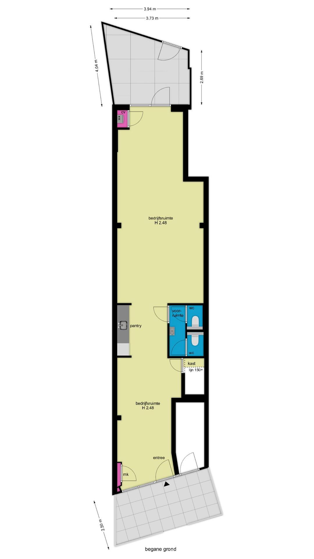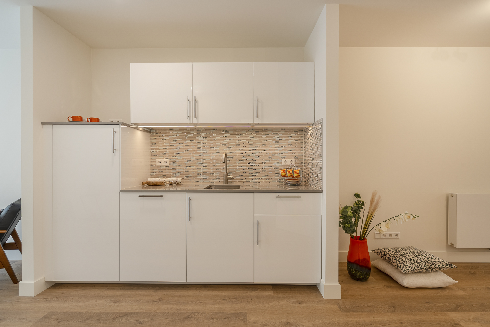 Het pand is gelegen op de begane grond en beschikt onder meer over twee open ruimtes, een luxe kitchenette, een moderne toiletunit en een kleine besloten achtertuin.