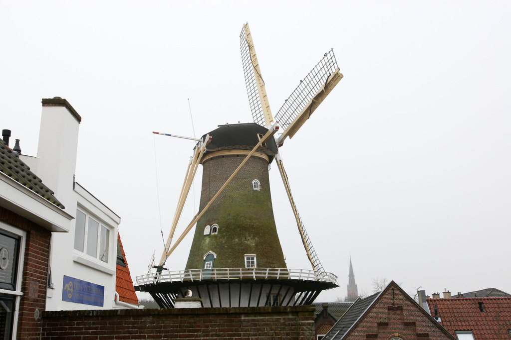 Hal, toilet, woonkamer met openhaard en aan de voorzijde een klein balkonnetje en aan de achterzijde van de woonkamer bereikt u door middel van openslaande deuren het riante dakterras met uitzicht op de molen. Het dakterras biedt zeer veel privacy en is voorzien van zonnewering (gelegen op het ZuidWesten), de woonkeuken is van alle gemakken voorzien en heeft een eettafel die aan de keuken vast zit.