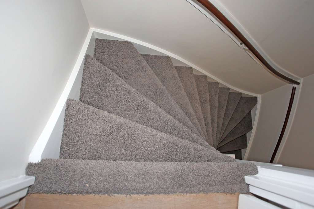 Entrance at street level, stairs to the first floor. The meter cupboard is located downstairs in the hallway.