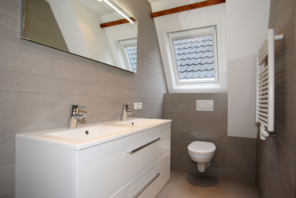 Via de trap in de hal bereikt u de overloop van de tweede etage alwaar u een tweetal ruime slaapkamers aantreft, een luxe badkamer met inloopdouche, toilet, wastafelmeubel en handdoekradiator, er is een aparte wasruimte aanwezig alwaar de opstelplaats voor de wasmachine en droger is.